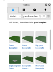 Now we’ll search for ‘grass baseplate’ in the toolbox.