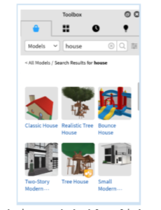 Now for the fun part, let’s start by adding a house. To do that, go to the toolbox again and search for a house model.